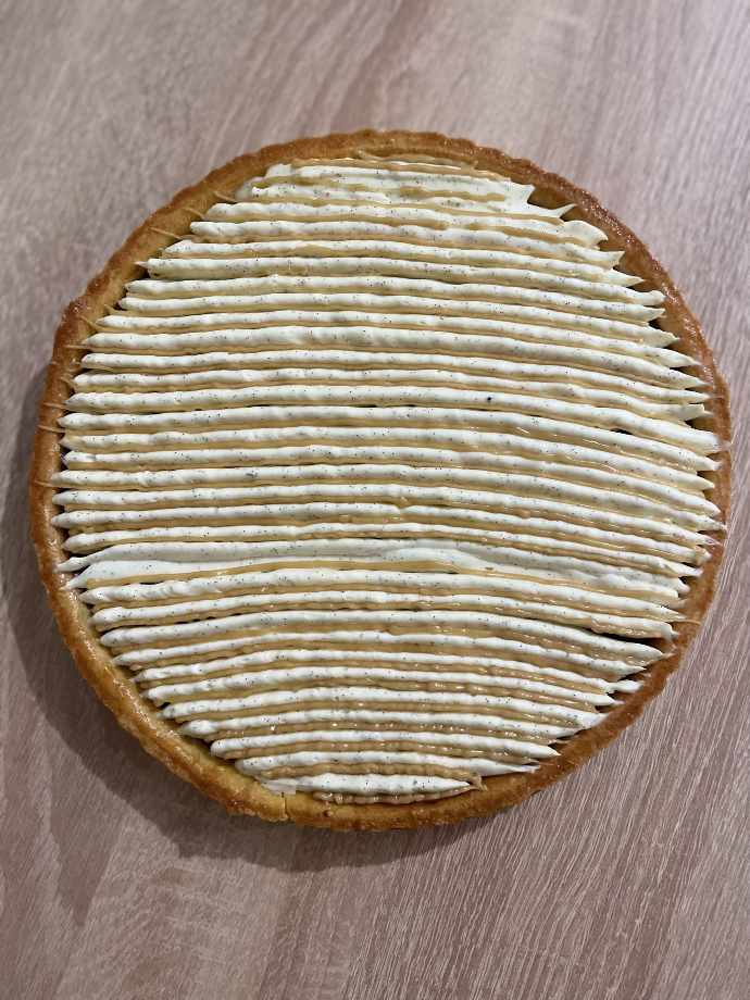 Poche-la harmonieusement sur toute la surface de la tarte (idéalement avec une douille Saint-Honoré).