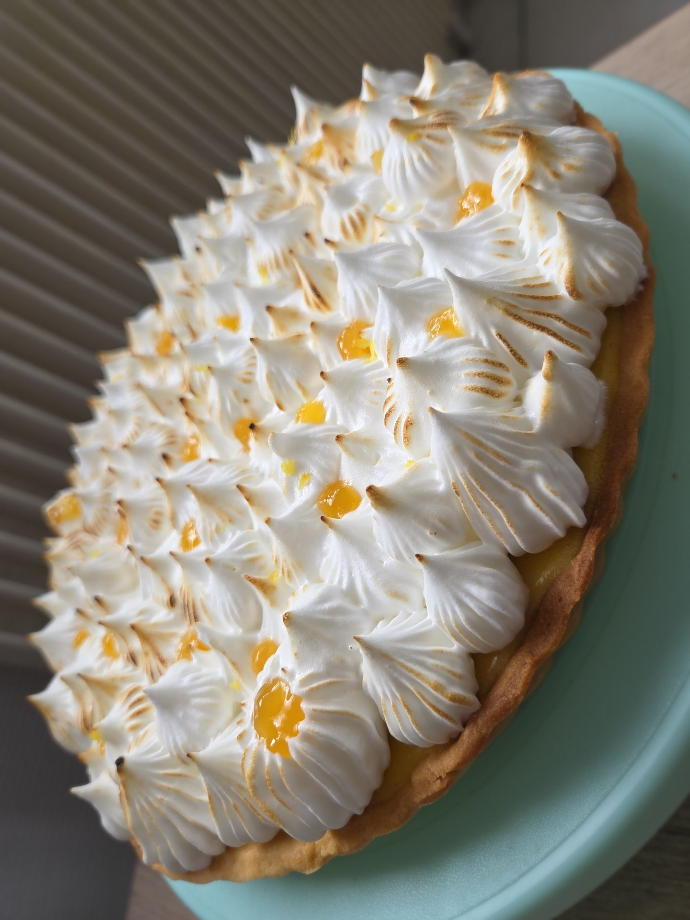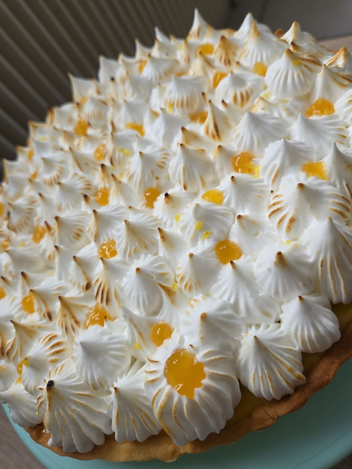 Termine en dorant délicatement la meringue au chalumeau, juste ce qu’il faut pour obtenir une belle couleur dorée… et ta tarte est prête à briller de mille feux au milieu de la table !